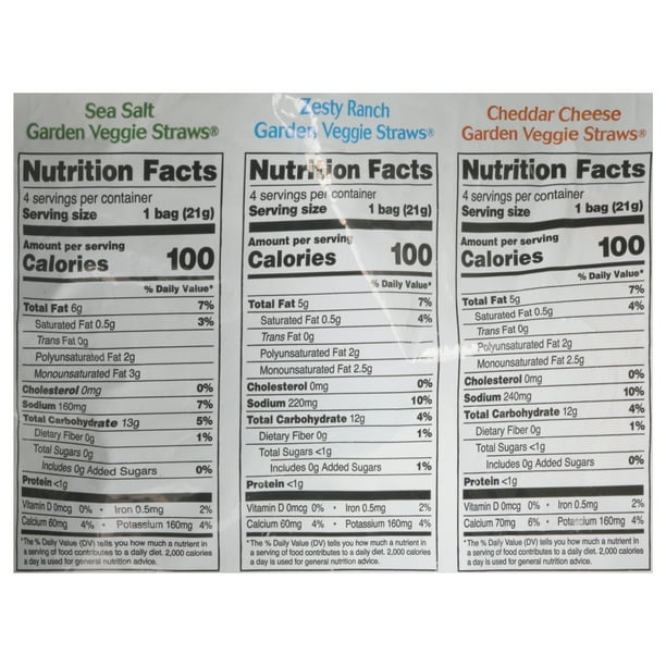 Veggie straws nutrition label. › p › sensible-portions-zesty-ranchSensible Portions Zesty Ranch Garden Veggie Straws - 6oz With 38 crunch-tastic straws per serving, they're perfect for a satisfying snack or to add a little crunch to lunch. Our veggie straws are delightfully free of genetically modified ingredients, have 0mg cholesterol and 0g trans fat per serving, and they're also Certified Kosher and gluten-free. › chocolate-milkshake-4587581Chocolate Milkshake Recipe - The Spruce Eats Jul 26, 2022 · Nutella: Add a quarter cup of Nutella chocolate hazelnut spread and decorate with cookie straws. Chocolate-Oreo: Toss in a cup of Oreo cookies before blending. Decorate with two whole Oreo cookies and a maraschino cherry. S'more: Toast five marshmallows under the broiler, cool-off, and toss in with the other ingredients. Blend and serve with ... › childrens-products › g12 Best Organic Baby Food Brands to Buy 2022 - Good Housekeeping Mar 22, 2022 · We evaluated nutrition, ingredients, and flavors to see which organic baby food brands are the best for you to try in 2022. ... including teethers, puffs, crackers, veggie straws, meal bowls, made ... › nutrition › are-veggie-strawsVeggie Straws: Are They Healthy? Pros, Cons, Nutrition Oct 14, 2021 · Overall, veggie straws are lowest in calories per serving, but not vastly different in total fat and sugars compared with regular potato chips, tortilla chips, and sweet potato chips.. In fact ...