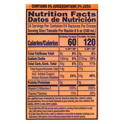 SUNNYD Tangy Original Orange Juice Drink, 1 Gallon Bottle Nutrition facts. Refer to the product label for full dietary information, which may be available as an alternative product image. 16 Servings Per Container.