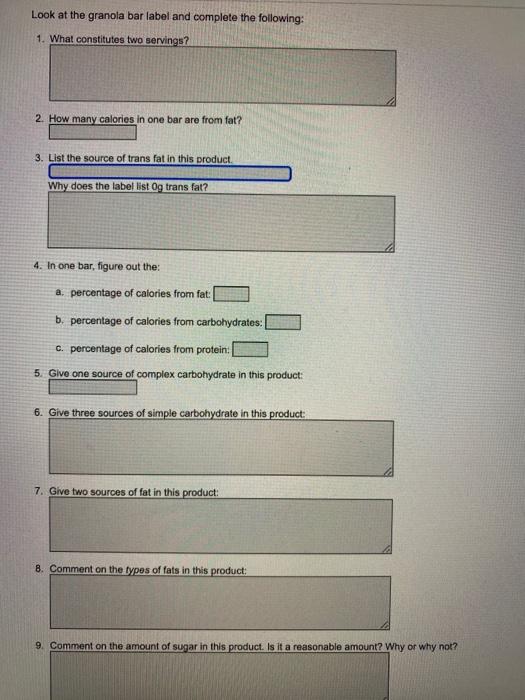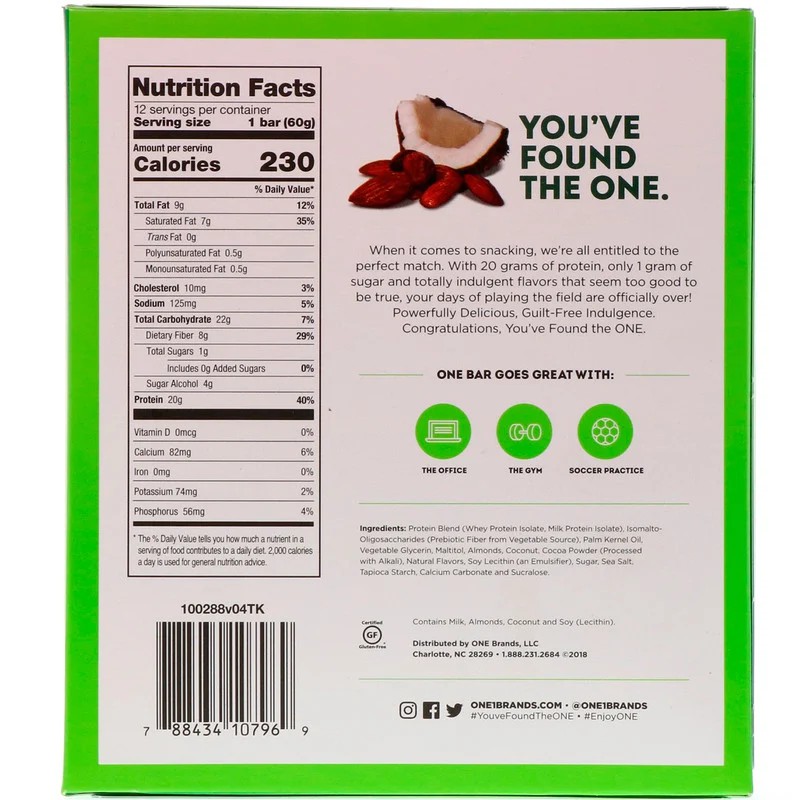 One bar nutrition label