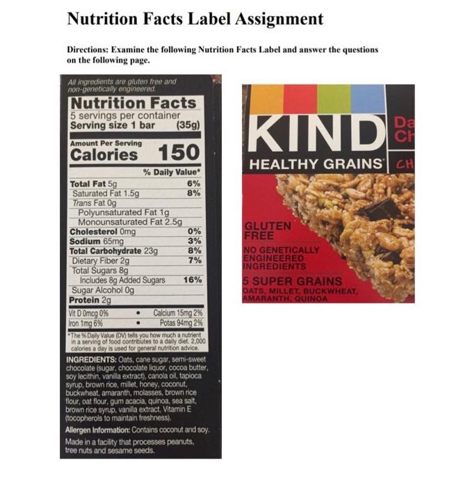 38 one bar nutrition label