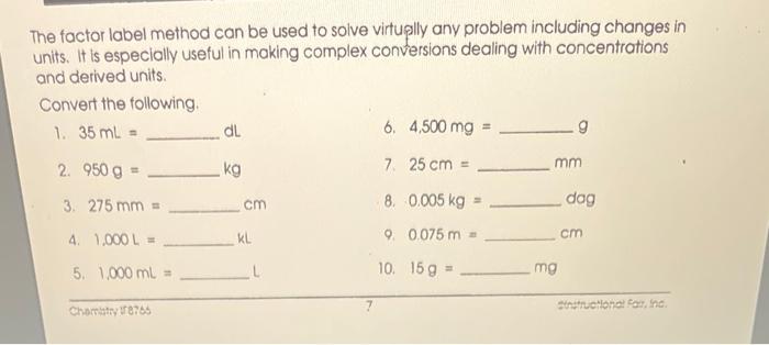Factor Label Method (Unit Conversions) - YouTube Factor-label method and dimensional analysis commonly used in one-step and two-step unit conversions for chemistry, physics, math, ... Using the Factor Label Method for Unit Conversions - YouTube Introduction to the basics of using the factor label method for unit conversions. Overview of rules for properly placing conversion factors ... Factor-Label Method in Chemistry | Steps, Conversions & Examples The factor-label method, also called dimensional analysis or unit conversions, is used to convert from one unit of measurement to another unit.