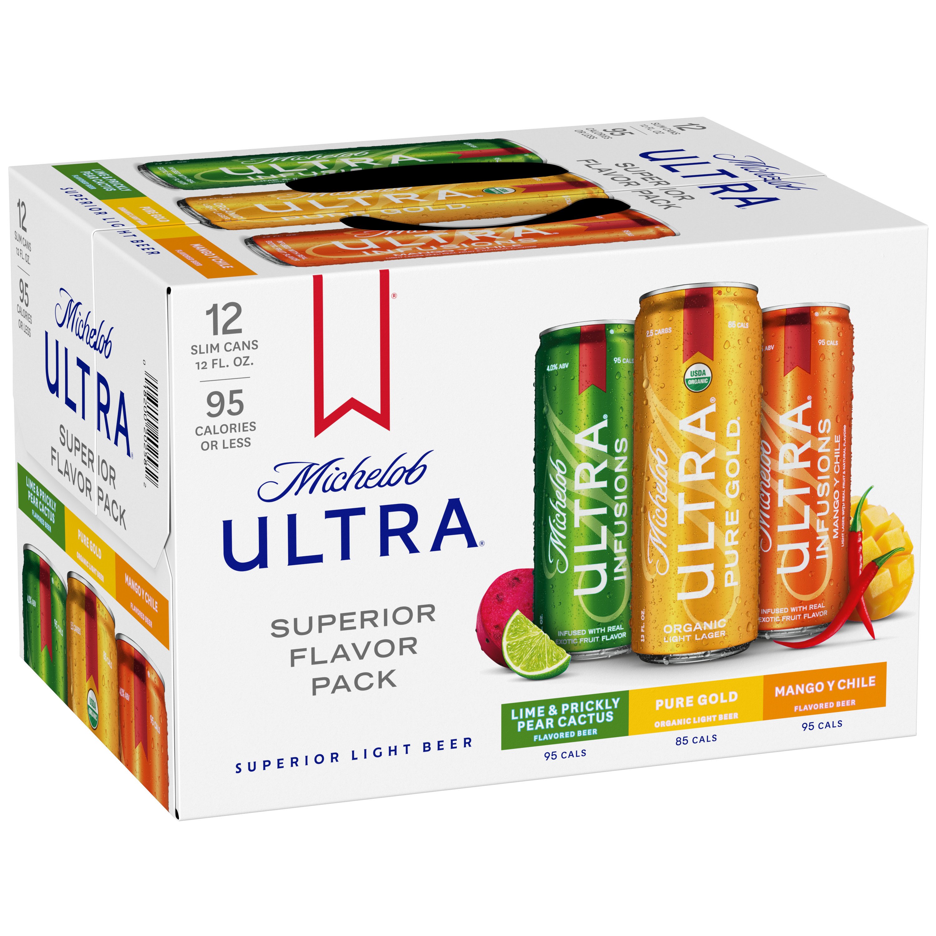 Michelob Ultra Ultra Infusions Organic Variety Pack 12 oz Cans Description Michelob Ultra Variety Pack Infusions 12 oz Cans Nutrition and ingredients Nutrition Facts 0 servings per container Serving Size 0.00 Allergens and safety warnings Government Warning: (1) According to the Surgeon General, women should not drink alcoholic beverages during pregnancy because of the risk of birth defects.