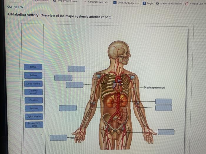 Art labeling activity the major systemic arteries. Art labeling Activity Overview of the Major Systemic - Kunduz Jan 23, 2023 ... Art labeling Activity Overview of the Major Systemic Arteries 2 of 3 Renal Axillary Superior mesenteric Inferi > Receive answers to your ... Anatomy & Physiology II: Chapter 19 Blood Vessel and Circulation - Quizlet Overview of the major systemic arteries (1 of 3) Overview of the major systemic veins (1 of 4) Arteries of the neck and head (2 of 2) Arteries of the brain (1 of 2) Arteries supplying the abdominopelvic organs (2 of 2) The hepatic portal system (1 of 2) Fetal circulation (full-term fetus, before birth, with placenta) lab 3, exercise 3 Flashcards | Quizlet Drag the labels to identify the arteries and veins of the systemic and pulmonary circuits. 1. pulmonary arteries 2. capillaries in lungs 3. pulmonary veins 4. right atrium 5. capillaries in head and neck 6. systemic arteries 7. left ventricle 8. capillaries in abdominal organs 9. systemic veins 10. capillaries in upper limbs Lab 9 HW Flashcards | Quizlet Terms in this set (20) Drag the labels to identify the structures of a typical artery. Drag the labels to identify the structures of a typical vein. Drag the labels to identify the histological structure of blood vessels. Drag the labels to identify the structures in a capillary bed.